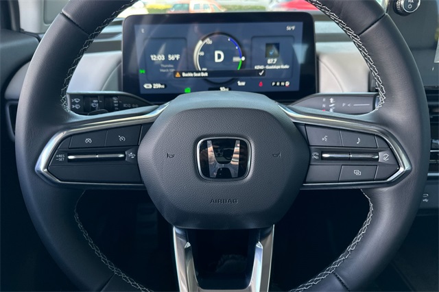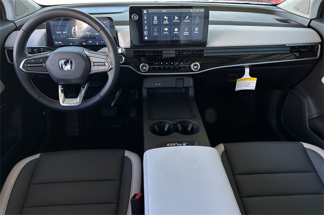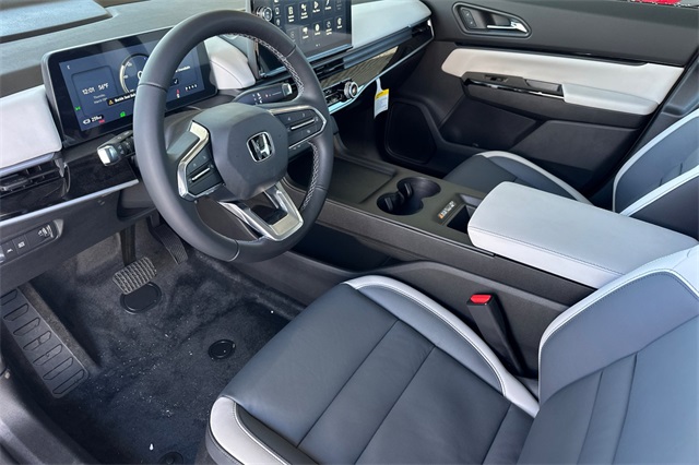 2025 Honda Prologue Touring all ELECTRIC. This smooth and comfortable driving suv was recently sold by us as a new vehicle but financing couldn't be secured. All of Honda's new car incentives still apply. This one is Mercury Silver Metallic with a sharp two-tone Black/Gray leather interior trim package. Features include Google Built-In, wireless Apple Carplay & Android Auto, a panoramic moonroof, LED lighting all around, front & rear parking sensors, heated power seats, a power tailgate, remote starting, and much more.