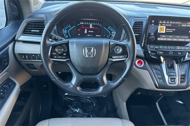 Certified. 2019 Honda Odyssey EX-L . It's powered by a 3.5L i-VTEC V6 SOHC with a 9-Speed Automatic. It's Diamond White Pearl with beige leather (for easy cleanup of spills) heated and powered front seats, the driver's side also has a two position memory. This "mini"-van is great for your family with seating for up to 8 people. The 3rd row seat will fold into the rear floor area and the 2nd row has a removable center seat. It's equipped with safety features like the blind spot info system, adaptive cruise control, lane keeping assist, forward collision warning & braking, a 3-view backup camera with rear cross traffic alert, side curtain airbags for all three rows, and much more. It has conveniences like 3-zone automatic climate control, Apple Carplay and Android Auto capability, a navigation system, dark privacy glass and remote starting for hot days, 900 cupholders (I'm joking, there are 15), and so much more.