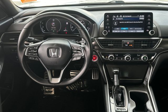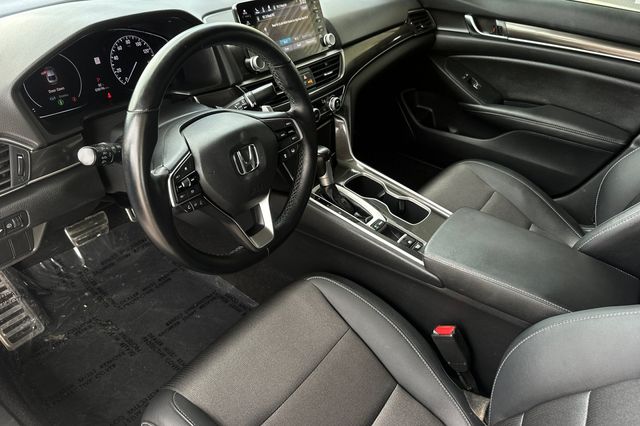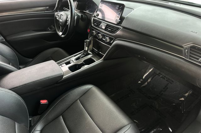 True Used.2020 Honda Accord Sport. It's powered by the 192HP 1.5L turbocharged 4-cylinder with automatic transmission. It's Platinum White Pearl outside with Black cloth interior. Exceptionally low mileage at just 38,180 miles - well below average for the year. The Honda Sensing suite includes adaptive cruise control, forward collision warning, and lane departure warning. There's a backup camera for easy parking. The Sport trim adds 19-inch alloy wheels, dual-zone automatic climate control, fog lights, a rear spoiler, and sport-tuned suspension. Inside you'll find an 8-inch touchscreen with Apple CarPlay and Android Auto, push-button start, and power driver's seat. The turbocharged engine delivers an EPA-estimated 32/42 MPG city/highway. Remote engine start and LED headlights come standard. Priced at $25,988. Contact Freeway Honda to schedule your test drive.