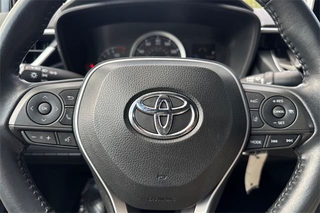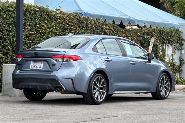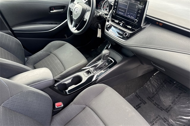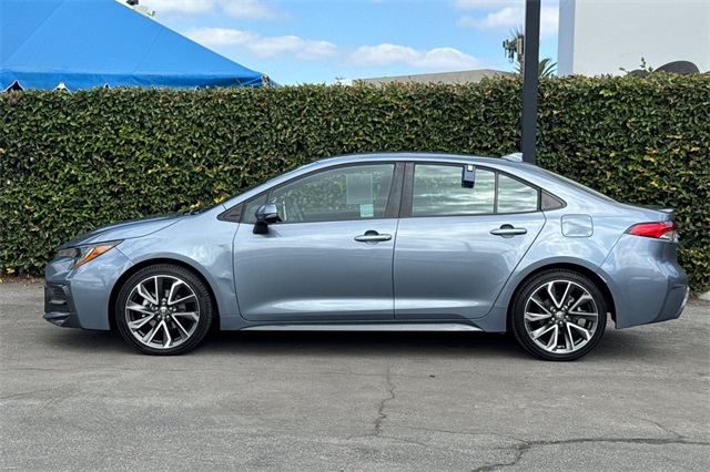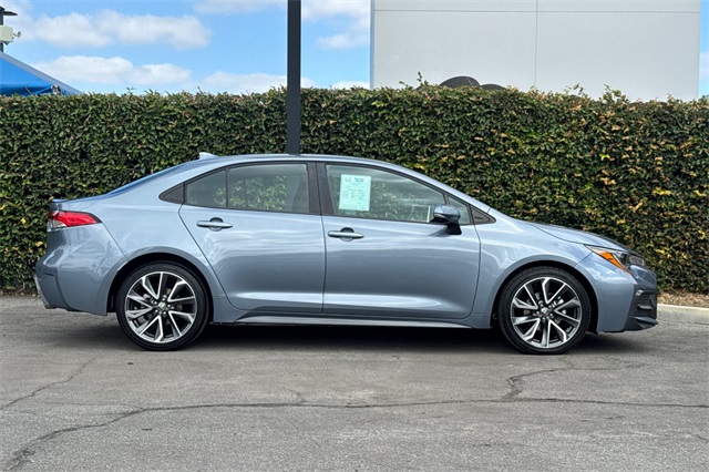 Celestite 2020 Toyota Corolla SE sedan. It's powered by a 2.0L DOHC 16V engine. There are paddle shifters on it's leather-wrapped steering wheel. Outside there are 18" alloy wheels, lower body skirts and a rear spoiler. Inside are premium cloth sport bucket seats, a bluetooth enabled audio system with Apple Carplay & Android Auto capability, and a backup camera. There is a split fold down rear seat back, keyless entry, radar cruise control, forward collision warning & braking, lane departure alert, and more.