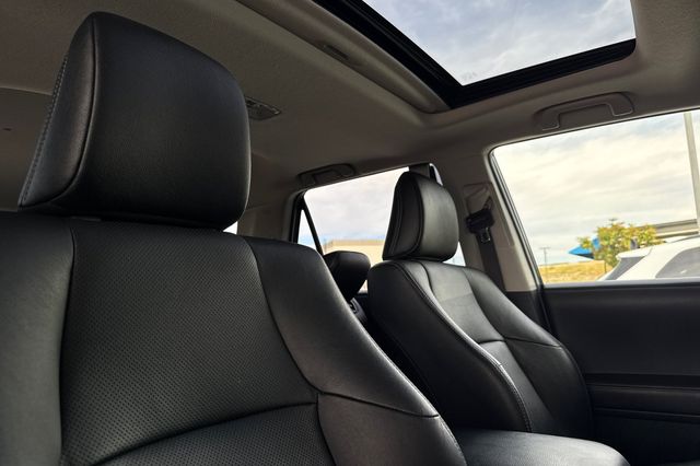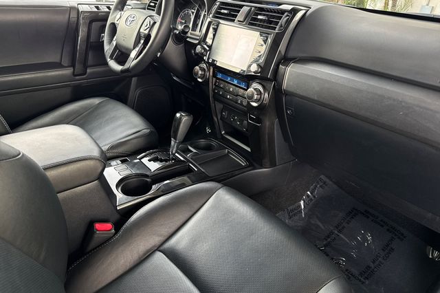 2021 Toyota 4Runner Nightshade. It's powered by the 270HP 4.0L V6 engine with 5-speed automatic transmission. It's Midnight Black Metallic outside with Black leather on the inside. This Nightshade edition features blacked-out exterior trim, black alloy wheels. Safety tech includes backup camera, lane departure warning, forward collision warning, and adaptive cruise control. The cabin has heated and cooled front seats, dual-zone automatic climate control, a 15-speaker JBL premium audio system with 8-inch touchscreen. There's roof rails and cross bars, running boards, and privacy glass. Remote keyless entry, push-button start, and USB connectivity keep you connected. With 47,679 miles and priced at $39,988, this Japan-built SUV delivers reliable performance. Contact Freeway Honda to schedule your test drive..