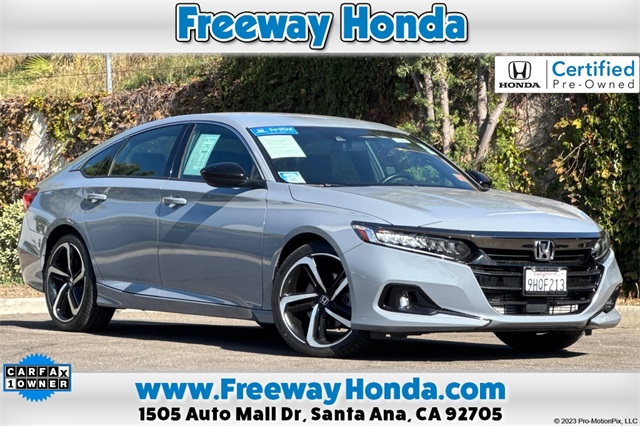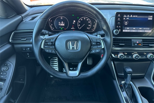 Certified. Sonic Gray Pearl 2022 Honda Accord Sport Sedan has had only one local owner, its got a full service history and a clean Carfax report, its powered by a 1.5L DOHC Turbo engine. This model is loaded with safety features like adaptive cruise control with low speed follow, forward collision warning & braking, lane keeping assist, and a 3-view backup camera. It's got conveniences like Apple Carplay and Android auto capability along with bluetooth for hands-free phone operation and streaming your music or podcasts, dual zone front climate control a 10-way power drivers seat, 19 alloy wheels, LED head lights and fog lamps, a rear spoiler, and a split-fold down rear seat back for extra long cargo.