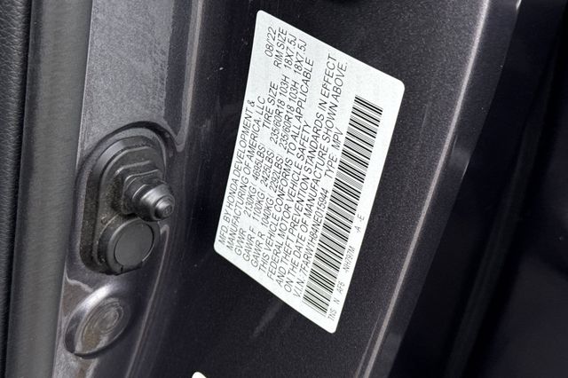 Certified. 2022 Honda CR-V EX-L The CR-V is Honda of America's top selling model. It's powered by a turbocharged 1.5L DOHC 16V engine. It's Modern Steel metallic with Black leather seat trim. Features include Alloy Wheels, fog lamps, a power tailgate, and power moonroof. The front seats are heated and powered with a 2-position memory for the driver. The touch screen audio system has Apple Carplay/Android Auto capability. There are blind spot alerts in the heated outside mirrors, plus adaptive cruise control with stop & go, forward collision warning & braking, lane keeping assist, a 3-view backup camera. The dual zone climate control system also has extra vents for the rear seat passengers, plus there is also dark privacy glass help keep passengers cool inside .