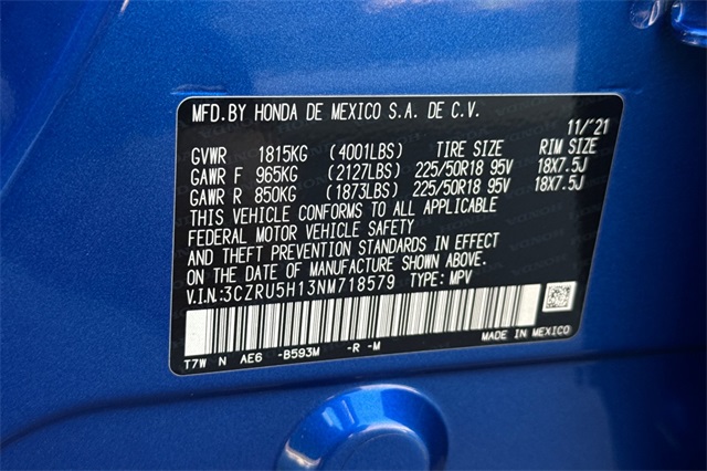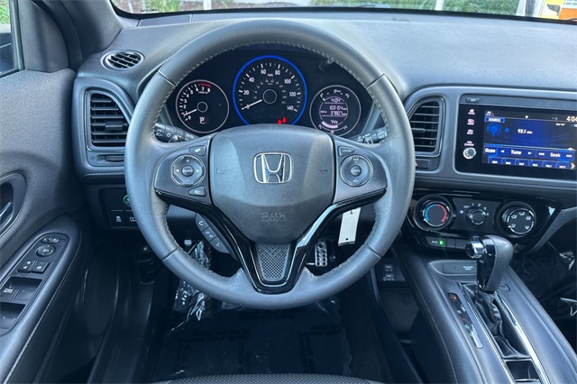 Certified. 2022 Honda HR-V Sport Crossover in Aegean Blue Metallic powered by a 1.8L i-VTEC engine. It's equipped with a touchscreen audio system with Apple Carplay & Android Auto capability and a 3-view backup camera hands-free phone operation, cruise control, tilt/telescopic steering wheel, keyless entry system, power windows and door locks, a 3-view backup camera, alloy wheels, fog lamps, privacy glass, plus it's got the flip or fold rear Magic seat for a huge amount of very adaptable cargo space.