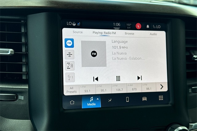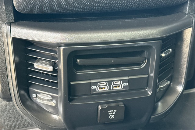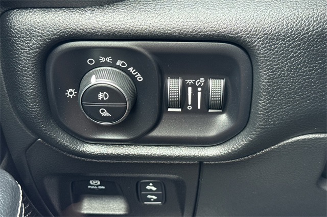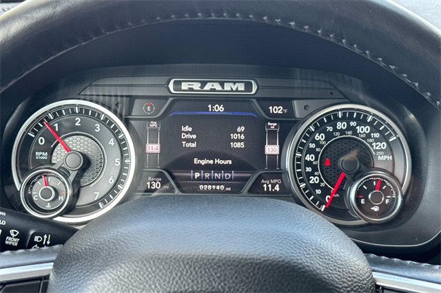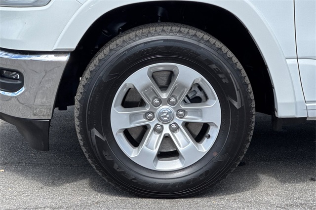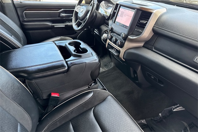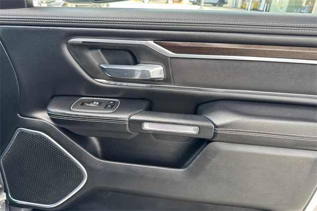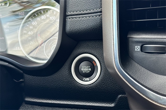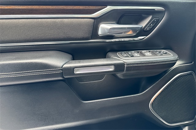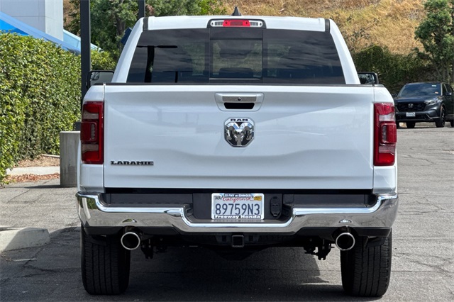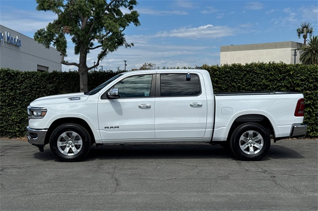 2022 Ram 1500 Laramie CrewCab. It's powered by the famous 5.7L HEMI V8. Colored in Bright White Clearcoat outside with Black leather trim on the inside with luxury door panels with woodgrain trim. There are dual power seats, the driver's seat has a memory, even the pedals are power adjustable. The key fob has remote starting, there's an auto-dimming mirror with a built in universal garage opener, bright alloy wheels, chrome bumpers and door handles. The 8.4" touch screen audio system has a built-in Wi-Fi hotspot, Apple Carplay & Android Auto capability. There are heated mirrors, a power sliding rear window, tow hitch receiver and more.