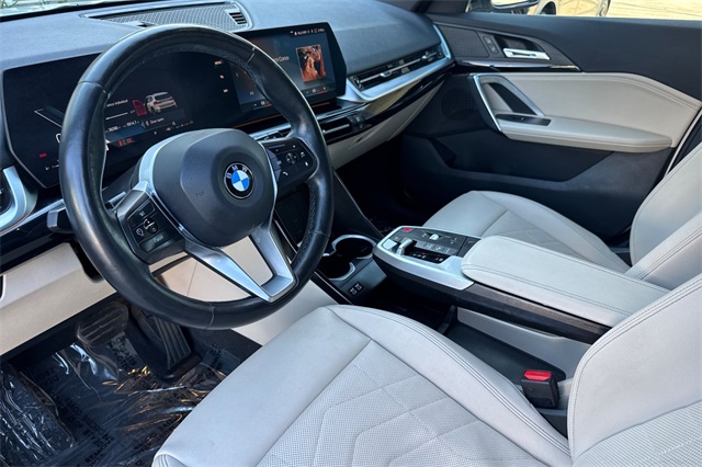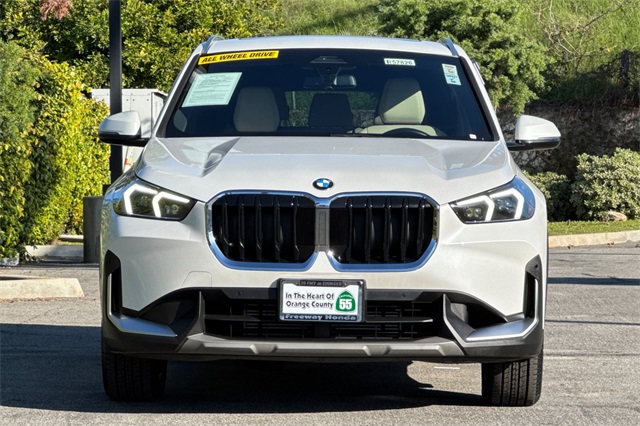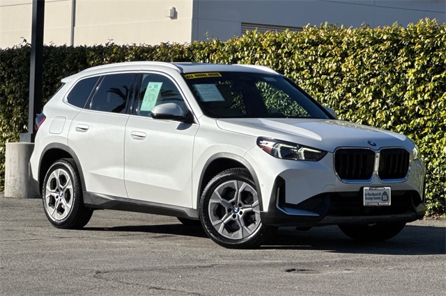 2023 BMW X1 xDrive28i All-Wheel-Drive. Powered by a 241HP turbo with an 7-Speed Automatic and full time All-Wheel-Drive. It's Mineral White Metallic with Oyster Sensatec seats with heat, memory, and power adjustment. It's loaded with features like heated, power folding mirrors with blind spot monitors, a panoramic moonroof, roof rails, Hi-Fi sound system with wireless Apple Carplay/Android Auto/Phone charging, navigation with real-time traffic info. There are also front & rear parking sensors, LED ambient interior lighting, smart entry keys, a folding rear seatback, and much more. This car is still covered under the BMW factory warranty.