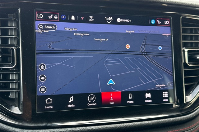 It's got a HEMI! 2023 Dodge Durango R/T with All-Wheel-Drive. It's Diamond Black Clearcoat with a Black interior. The 5.7L HEMI V8 puts out 360HP. It's a full time AWD system so you get all the traction all the time. the Dodge performance pages add some fun to your driving along with 20" alloy wheels with fat tires, performance suspension & steering, plus heavy duty 4 wheel disc brakes to help slow you down. There's also the performance hood and dual exhaust tips to complete the sporty look. Inside it's got heated seats, mirrors, and steering wheel, a power seat, wireless phone charger, blind spot monitors, plus a 10.1" touch screen audio system with Apple Carplay & Android Auto capability, rain-sensing wipers, a power tailgate and much more.