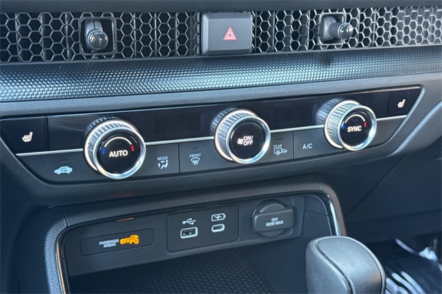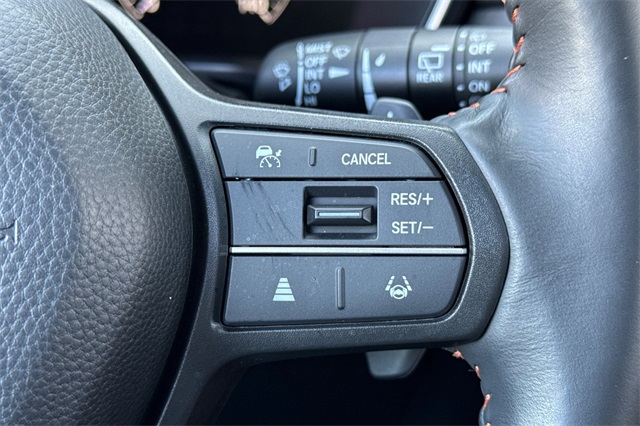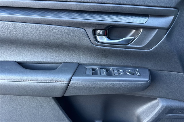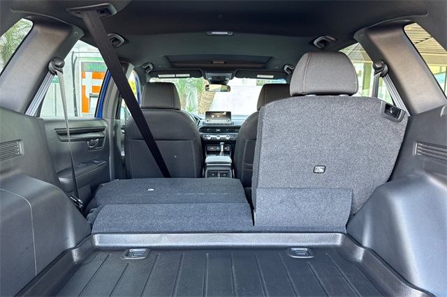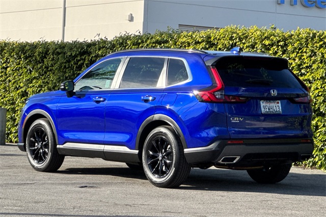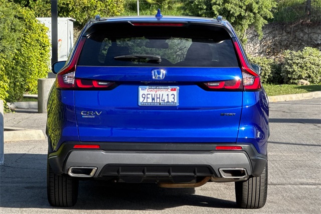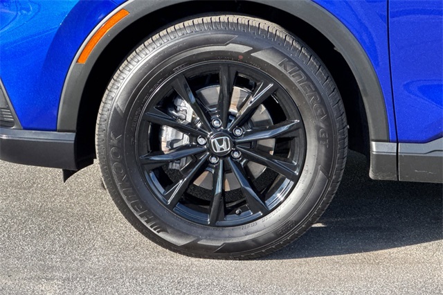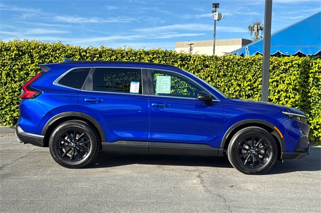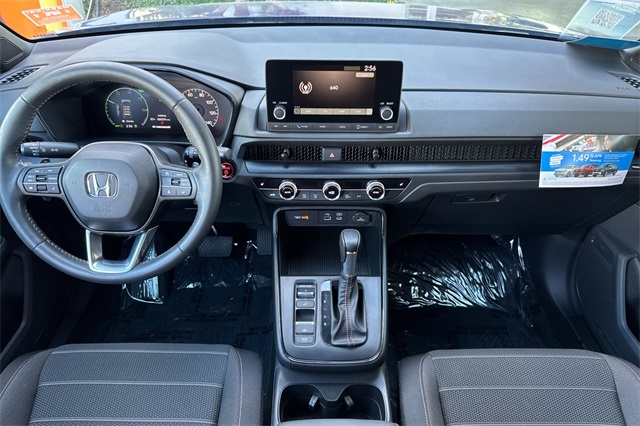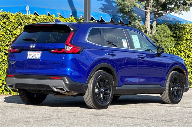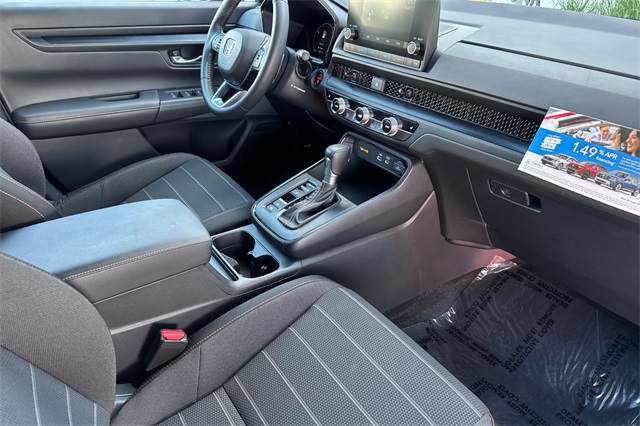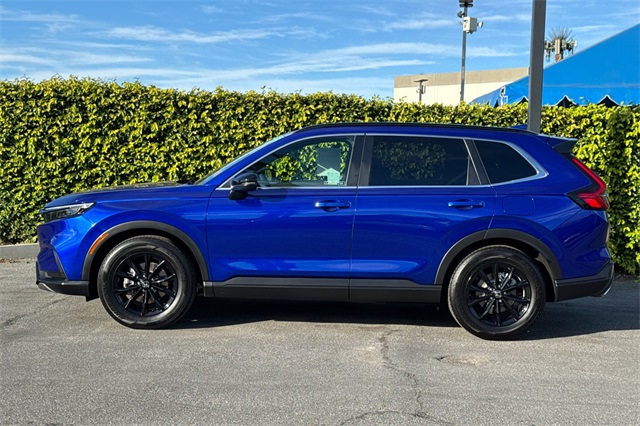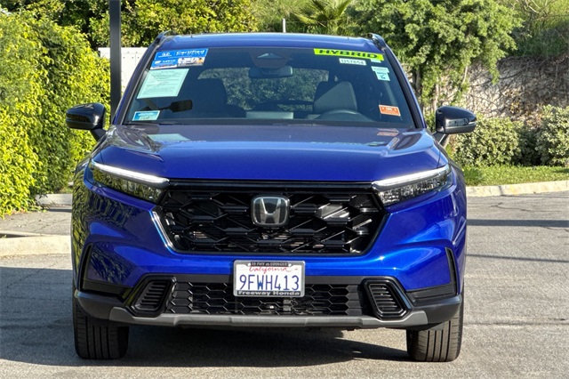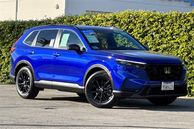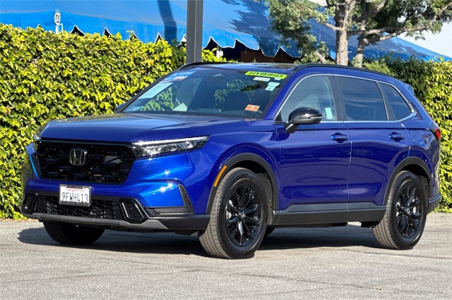 Certified. 2023 Honda CR-V Hybrid Sport is powered by a 2.0L ICE engine with two electric motors plus Real Time All-Wheel-Drive. It's color is Still Night Pearland it has Black cloth seat trim with subdued orange accent stitching. Features include Black Alloy wheels & roof rails, LED lighting for great night time visibility, and a power moonroof. The front seats are heated and 8-way powered for the driver. The touch screen audio system has Apple Carplay/Android Auto capability. There are blind spot alerts in the heated outside mirrors, adaptive cruise control with stop & go, forward collision warning & braking, lane keeping assist, a 3-view backup camera along with cross traffic alert. Dual zone climate control, and dark privacy glass help keep passengers cool inside.