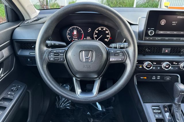 Certified. Lunar Silver Metallic 2023 Honda CR-V EX has had only one owner, and a clean Carfax report, its powered by a 1.5L DOHC Turbo engine. This model is loaded with safety features like the blind spot information system, adaptive cruise control with low speed follow, forward collision warning & braking, lane keeping assist, and a 3-view backup camera with rear cross traffic alert. It's got conveniences like Apple Carplay and Android auto capability, bluetooth for handsfree phone operation and for streaming your music or podcasts, dual zone front climate control with rear seat A/C vents too. The front seats are heated and the driver's side has 10-way power adjustment. It's also got remote starting, a power moonroof, dark privacy glass, alloy wheels, fog lamps, and even USB power ports for rear seat passengers.