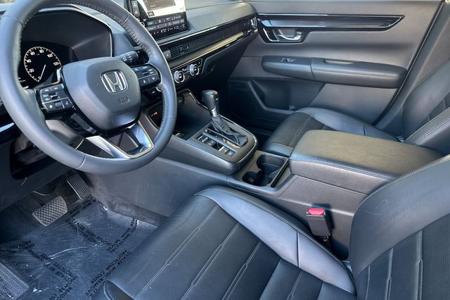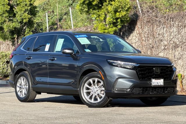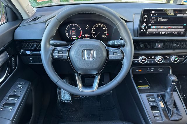 Certified. 2023 Honda CR-V EX-L. It's powered by the 190HP 1.5L 4-cylinder with automatic transmission and front-wheel drive. It's Meteorite Gray metallic outside with Black leather on the inside. The front seats are heated and power-adjustable for the driver, the rear seats split/fold to expand cargo capacity. There's a hands-free power tailgate, power moonroof with sunshade, remote engine start. The Honda Sensing suite includes adaptive cruise control, collision mitigation braking, lane keeping assist, and road departure mitigation. Safety tech features blind spot monitoring, cross traffic monitor, and multi-angle rearview camera. Inside you'll find dual-zone automatic climate control, 7-inch touchscreen with Apple CarPlay/Android Auto, wireless phone charging pad, smart entry keys with remote starting, and a power tailgate. It has 35,501 miles and is priced at $29,988. Contact Freeway Honda to schedule your test drive.