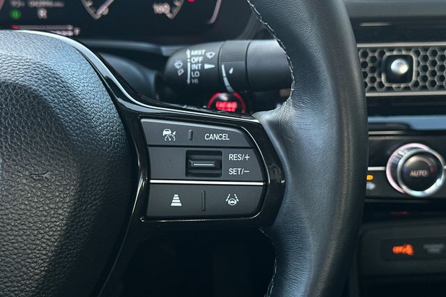 Certified. 2023 Honda Civic EX. It's powered by the 180HP 1.5L turbocharged 4-cylinder with automatic automatic transmission. It's Lunar Silver Metallic outside with Black cloth trim on the inside. This highway-driven sedan shows 42,889 miles and delivers excellent fuel economy. Honda Sensing safety suite includes adaptive cruise control, forward collision warning, lane departure warning. There's a 3-view backup camera for parking assistance. The spacious interior features comfortable seating for five, heated front seats, split-folding rear seats for cargo flexibility, and modern infotainment with smartphone integration, Apple Carplay & Android Auto capability. Power windows, power locks, and automatic climate control keep you comfortable. Smart key keyless entry and push-button start add convenience. Canadian-built quality and Honda reliability. Priced at $25,988. Contact Freeway Honda to schedule your test drive.