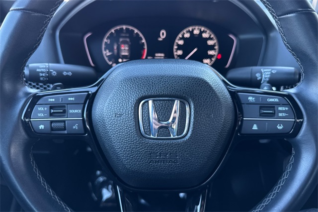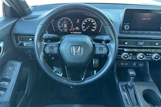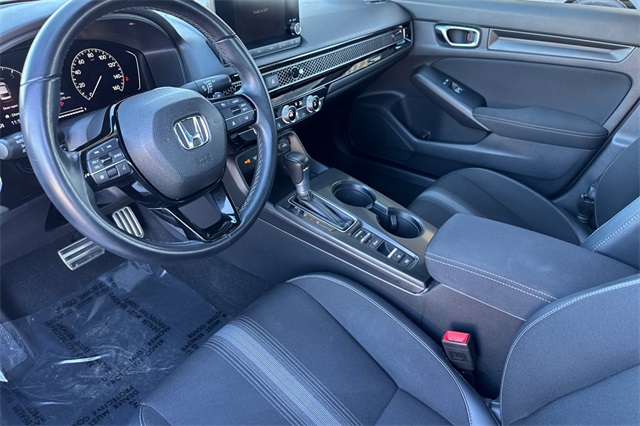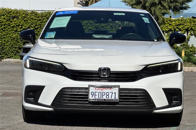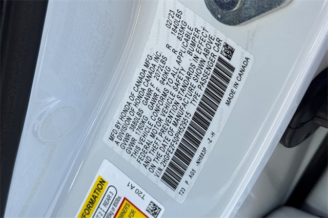 Certified. Platinum White Pearl 2023 Honda Sport Sedan. A one owner locally owned car powered by a 2.0L i-VTEC engine and an automatic transmission with paddle shifters on it's leather wrapped steering wheel. It's got Black cloth trim, an 8-speaker audio system with Apple Carplay and Android Auto capability, adaptive cruise control, lane keeping assist, forward collision warning & braking, 18" black alloy wheels, LED headlights, remote starting, a 3-view backup camera, a fold down rear seatback, and more.