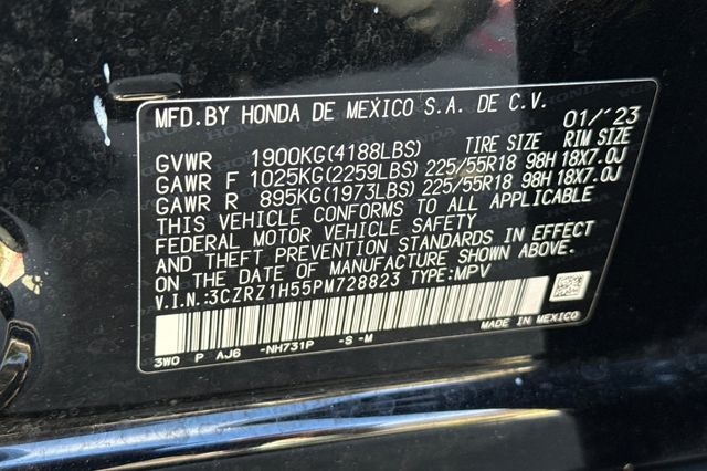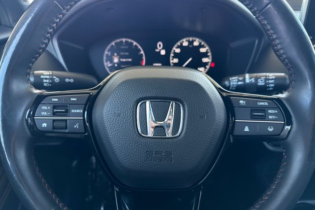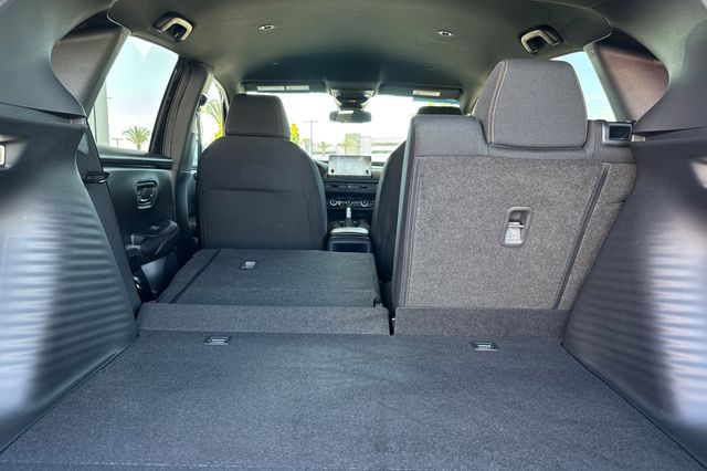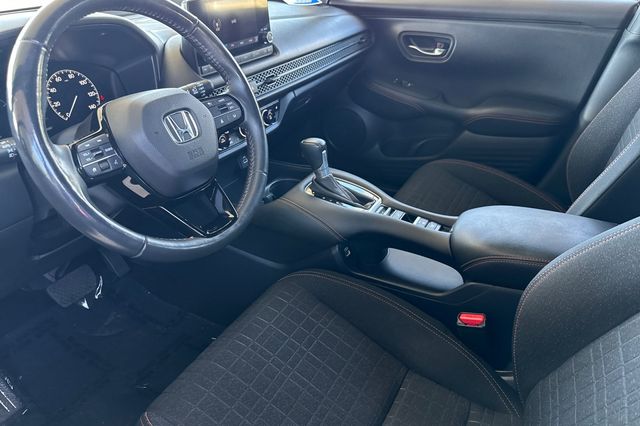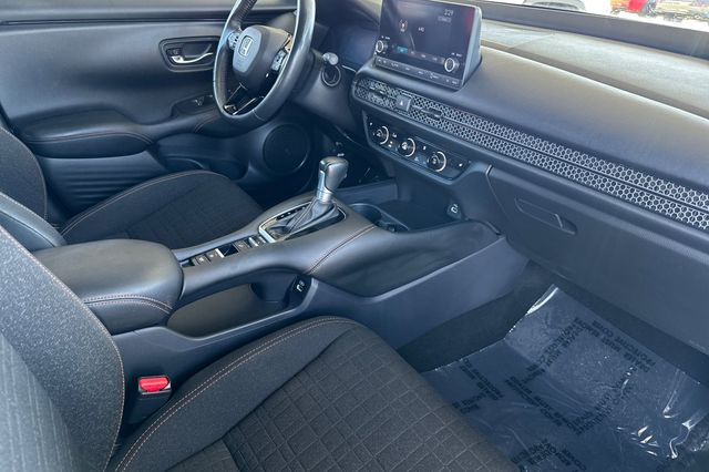 Certified. Crystal Black Pearl 2023 Honda HR-V Sport This is a 2nd generation (the new style!). It's powered by a 2.0L 16V i-VTEC engine. The interior has orange trimmed and heated Sport seats, a 180 watt, 6-speaker audio system with Apple Carplay and Android Auto capability, bluetooth for phone and music streaming, a split fold down rear seat. It's got safety features like the blind spot info system, adaptive cruise control with Stop & Go, lane keeping assist, a 3-view backup camera with rear cross traffic alert, and also forward collision warning & braking . You've also got dark privacy glass, black alloy wheels, LED headlights for great night time vision, and even remote starting so you can cool your car off before getting inside it on those hot summer days.