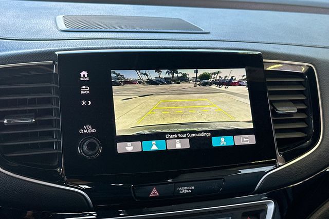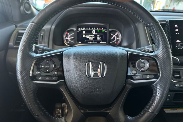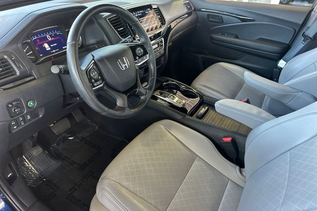 2023 Honda Passport ELITE. Equipado con motor V6 de 3.5L que genera 280HP, no el motor turbo de 4 cilindros. Es Obsidian Blue por fuera con tapiceria Gray leather por dentro. Los asientos delanteros tipo bucket tienen calefaccion y ajuste electrico, los asientos traseros tienen respaldo plegable dividido para aumentar el espacio de carga. Incluye porton trasero electrico manos libres, techo panoramico con persiana, arranque remoto. El paquete de tecnologia incluye sistema de navegacion activado por voz, monitores de punto ciego en espejos con calefaccion, control de crucero adaptativo, advertencia de salida de carril, advertencia de colision frontal y camara de reversa. Transmision automatica de 9 velocidades con traccion 4WD. 42,085 millas de carretera. $33,988. Contact Freeway Honda to schedule your test drive.