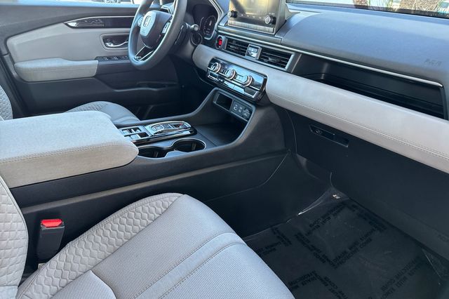 Certified. 2023 Honda Pilot LX. It's powered by the 285HP 3.5L V6 with 10-speed automatic transmission. It's Platinum White Pearl outside with Gray cloth seating on the inside. This 8-passenger SUV has three rows of seating with split-folding second and third rows for maximum cargo flexibility. There's a backup camera, Honda Sensing suite with adaptive cruise control, collision mitigation braking, lane keeping assist, and road departure mitigation. The infotainment system features an 8-inch touchscreen with Apple CarPlay and Android Auto. Other features include automatic climate control, keyless entry, push-button start, and roof rails. With only 26,656 miles, this below-average mileage Pilot is priced at $34,988. Contact Freeway Honda to schedule your test drive.