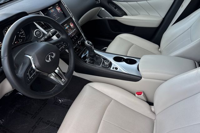 2023 INFINITI Q50 Luxe. Esta equipado con motor V6 de 3.0L turbo de 300HP, traccion trasera. Es Grand Blue Metallic por fuera con interior Stone Leather. Los asientos delanteros son calefaccionados y con ajuste electrico de 8 posiciones, asientos traseros con respaldo plegable 60/40. Incluye sistema de navegacion con pantalla tactil de 8 pulgadas, Bose Premium Audio de 16 bocinas, camara de reversa, monitoreo de punto ciego, advertencia de colision frontal, control de crucero adaptativo. Tiene encendido remoto, espejos exteriores calefaccionados con memoria, volante calefaccionado forrado en cuero, doble zona climatica automatica, puertos USB duales. Solo 20,957 millas - kilometraje excepcionalmente bajo. $33,988. Contact Freeway Honda to schedule your test drive.2023 INFINITI Q50 Luxe. Esta equipado con motor V6 de 3.0L turbo de 300HP, traccion trasera. Es Grand Blue Metallic por fuera con interior Stone Leather. Los asientos delanteros son calefaccionados y con ajuste electrico de 8 posiciones, asientos traseros con respaldo plegable 60/40. Incluye sistema de navegacion con pantalla tactil de 8 pulgadas, Bose Premium Audio de 16 bocinas, camara de reversa, monitoreo de punto ciego, advertencia de colision frontal, control de crucero adaptativo. Tiene encendido remoto, espejos exteriores calefaccionados con memoria, volante calefaccionado forrado en cuero, doble zona climatica automatica, puertos USB duales. Solo 20,957 millas - kilometraje excepcionalmente bajo. $33,988. Contact Freeway Honda to schedule your test drive.