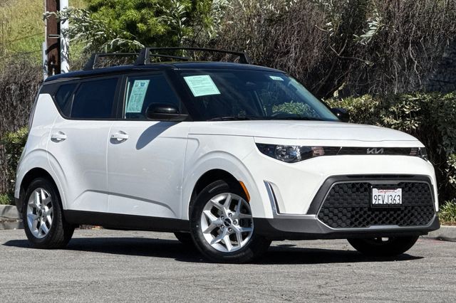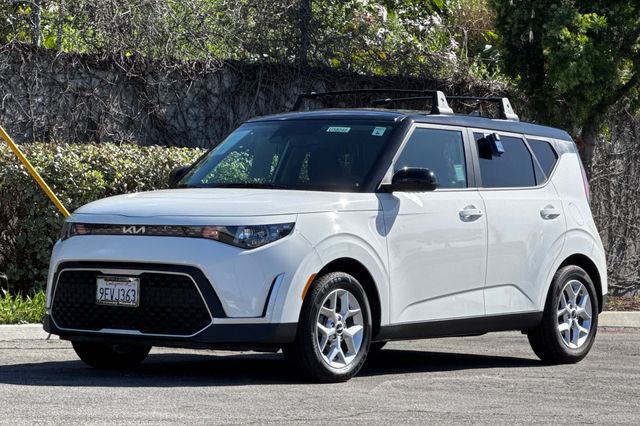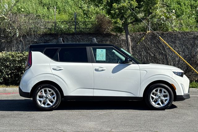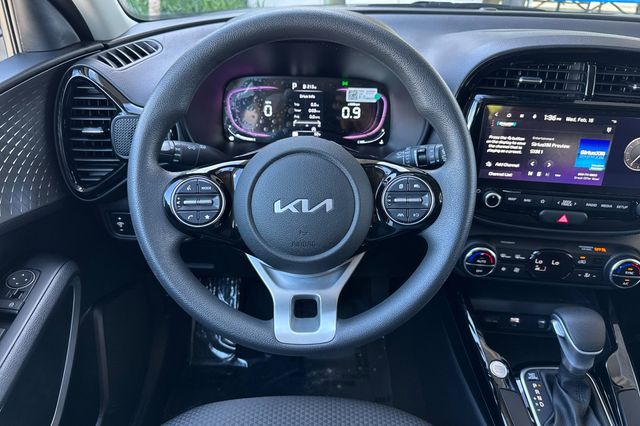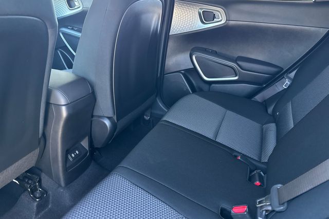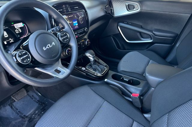 2023 Kia Soul S. It's powered by the 147HP 2.0L 4-cylinder engine with automatic transmission. It's Clear White w/ Black Roof outside with Black cloth on the inside. This compact SUV comes equipped with a backup camera for safe reversing, lane departure warning to keep you centered, forward collision warning and blind spot monitors for added protection. The Soul's boxy design maximizes interior space while maintaining easy maneuverability. Included features are alloy wheels, smart entry keys, dual zone climate control, power windows and locks, a 10.25" display with navigation, Apple Carplay & Android Auto capability, and Bluetooth hands-free calling. The rear seats fold flat to expand cargo capacity. With only 24,554 miles, this Korean-built SUV delivers excellent fuel economy and Kia's reliable engineering. Priced at $18,988. Contact Freeway Honda to schedule your test drive.