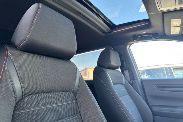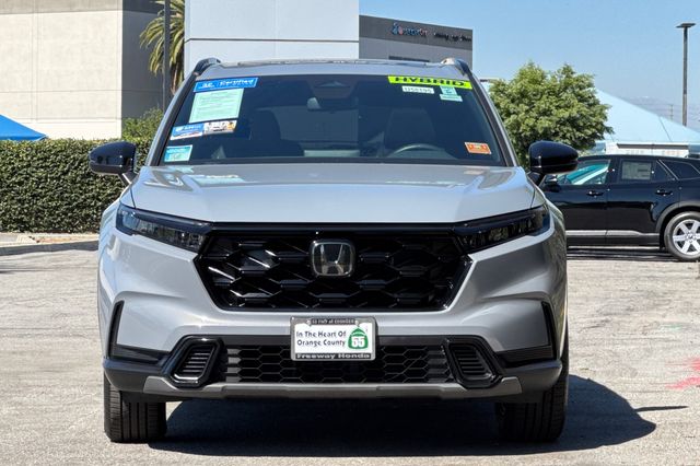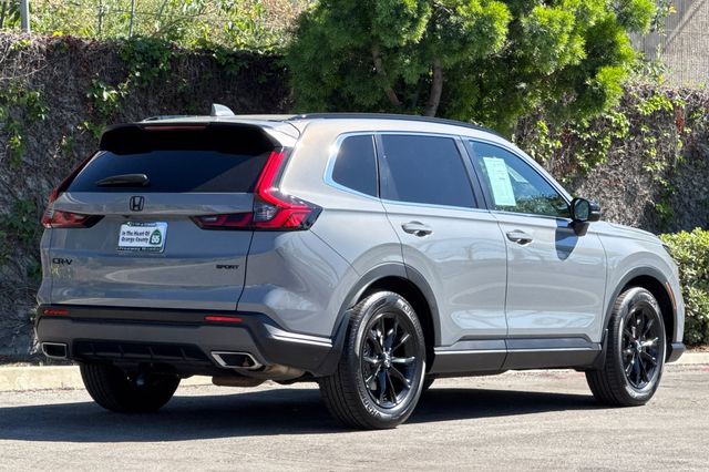 Certified. Honda CR-V Hybrid Sport is powered by a 2.0L ICE engine with two electric motors. It's color is called Urban Gray Pearl and it has Black cloth seat trim with subdued orange accent stitching. Features include Black Alloy wheels & roof rails, LED lighting for great night time visibility, and a power moonroof. The front seats are heated and 8-way powered for the driver. The touch screen audio system has Apple Carplay/Android Auto capability. There are blind spot alerts in the heated outside mirrors, adaptive cruise control with stop & go, forward collision warning & braking, lane keeping assist, a 3-view backup camera along with cross traffic alert. Dual zone climate control, and dark privacy glass help keep passengers cool inside.
