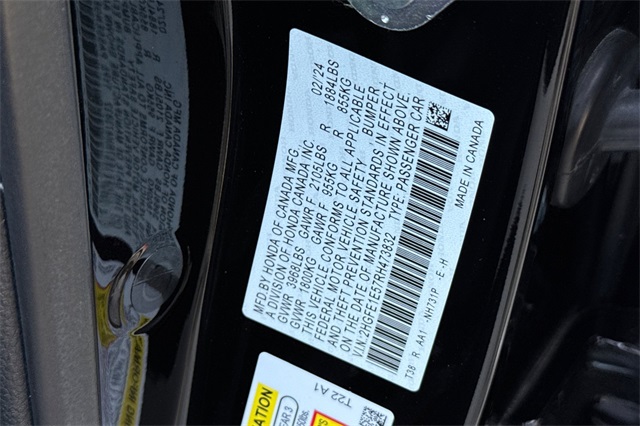 Certified. 2024 Honda Civic Si powered by a 200HP 1.5L DOHC Turbocharged engine with a slick shifting 6-speed manual and a helical limited slip differential to help put the power down. On the outside it's Crystal Black Pearl and equipped with 18" Black alloy wheels LED head lamps and and a rear spoiler. Inside it's got lightweight sport seats in black with red accents. It's got the BOSE premium audio system with wireless Apple Carplay/Android auto/phone charging capability, and 12 speakers for great sound. Safety features include blind spot alerts in the heated outside mirrors, adaptive cruise control, lane keeping assist, forward collision warning & braking, a 3-view backup camera with cross traffic alert. There are also smart entry keys, a power moonroof, and much more.