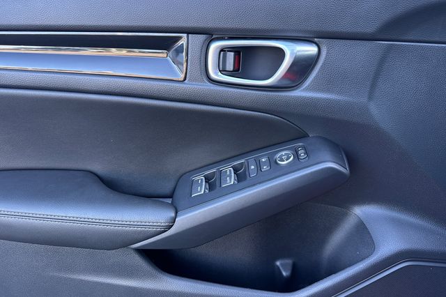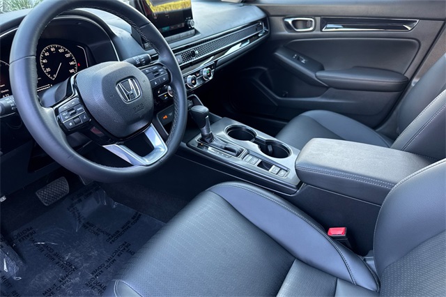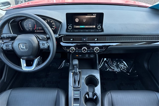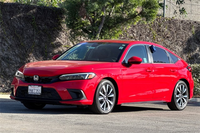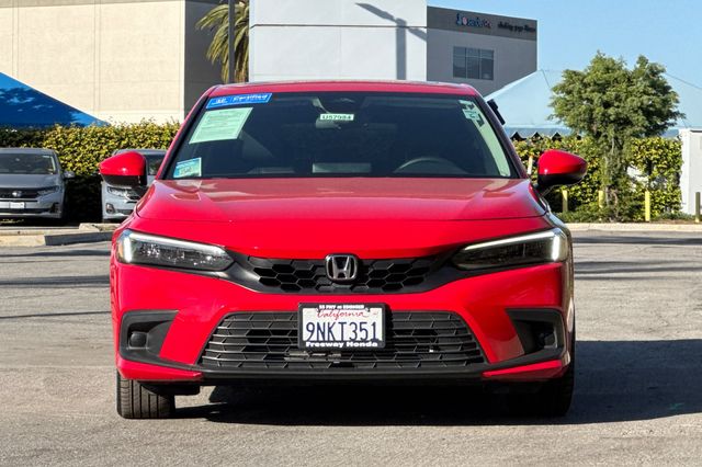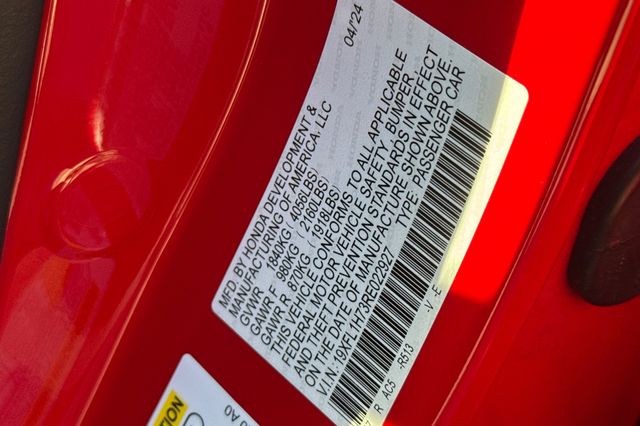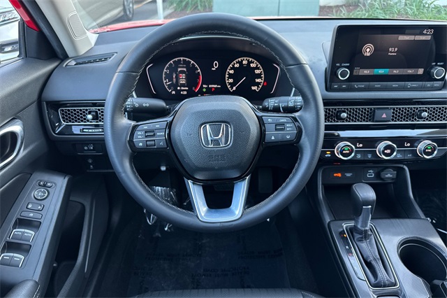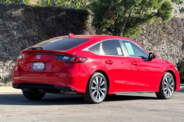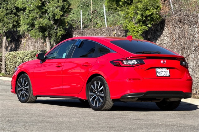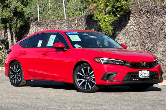 Certified. Rallye Red 2024 Honda Civic EX-L Hatchback powered by a 1.5L DOHC Turbocharged engine, and an automatic transmission. It's equipped with alloy wheels, and LED headlights. Inside it's got black leather trim, and the driver's seat is power adjustable, both front seats are heated, and it's got Apple Carplay and Android auto capability, bluetooth for phone and music streaming, adaptive cruise control, lane keeping assist, forward collision warning & braking, blind spot monitors, push button starting, a 3-view backup camera with cross traffic alert, power moonroof, and much more.