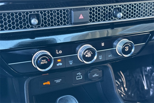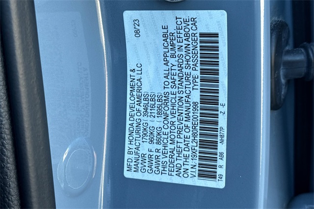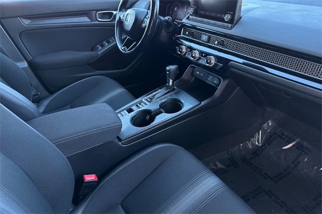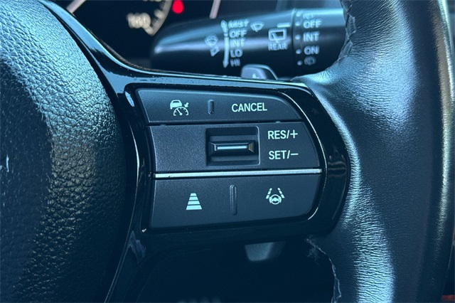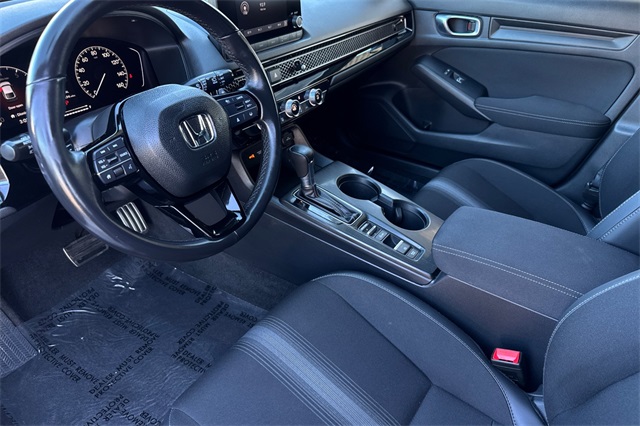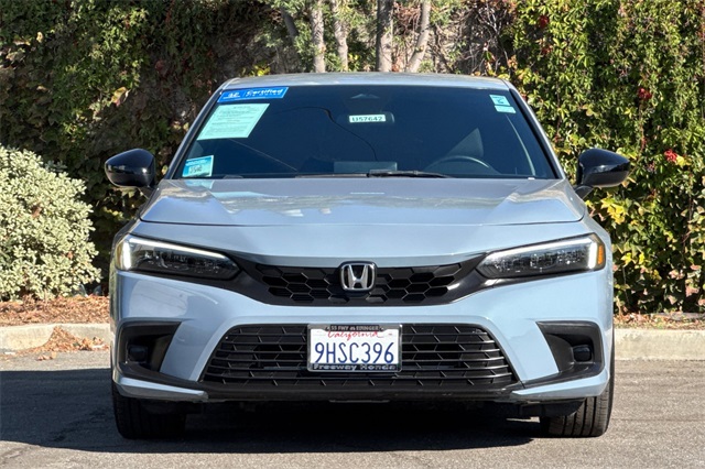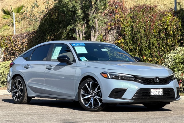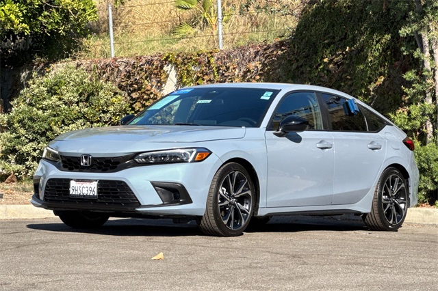 Certified. 2024 Honda Civic Sport Hatchback. A one owner car in Sonic Gray Pearl powered by a 2.0L i-VTEC engine and an automatic transmission with paddle shifters on it's leather wrapped steering wheel. It's got Black cloth trim, an 8-speaker audio system with Apple Carplay and Android Auto capability, adaptive cruise control, lane keeping assist, forward collision warning & braking, 18" black alloy wheels, LED headlights, remote starting, a 3-view backup camera, a split/fold down rear seatback, and more.