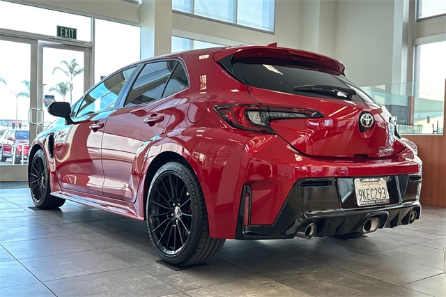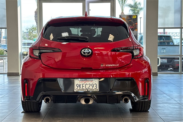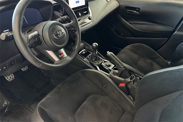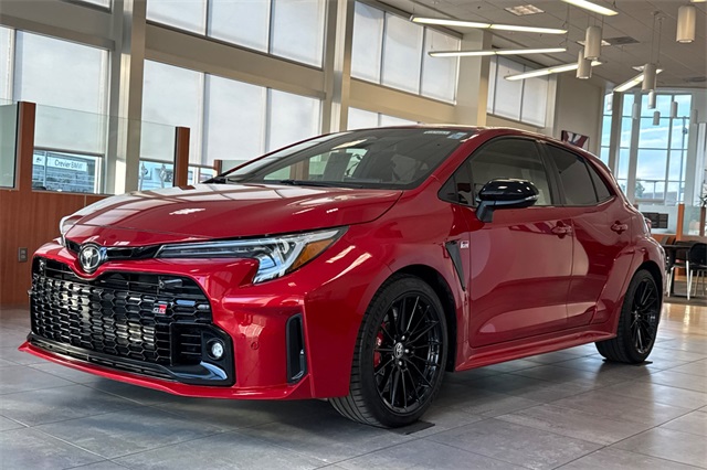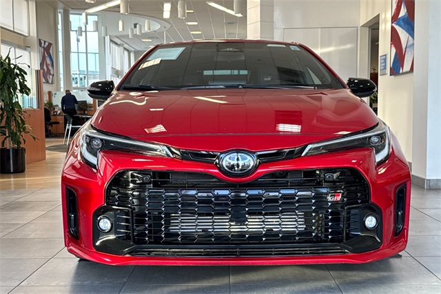 This is the Mighty Mouse! 2024 Toyota GR Corolla Premium with All-Wheel-Drive and a slick shifting 6-Speed Manual connected to the 300HP Turbocharged DOHC engine. It's Supersonic Red with Black suede effect heated sport seats. Outside are bulgy fender flares, lower body skirts, 18" Black alloy wheels, a rear spoiler and LED fog lamps along with LED headlights. Safety features include blind spot monitors, forward collision warning & braking, lane keeping assist, front & rear parking sensors, and more. There's also dark privacy glass, smart entry keys, wireless Apple Carplay & Android Auto capability, a wireless phone charger, and much more.