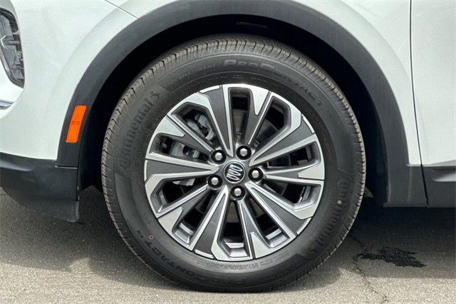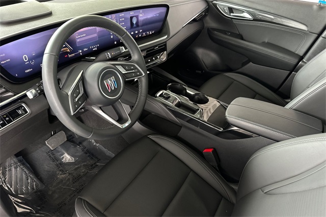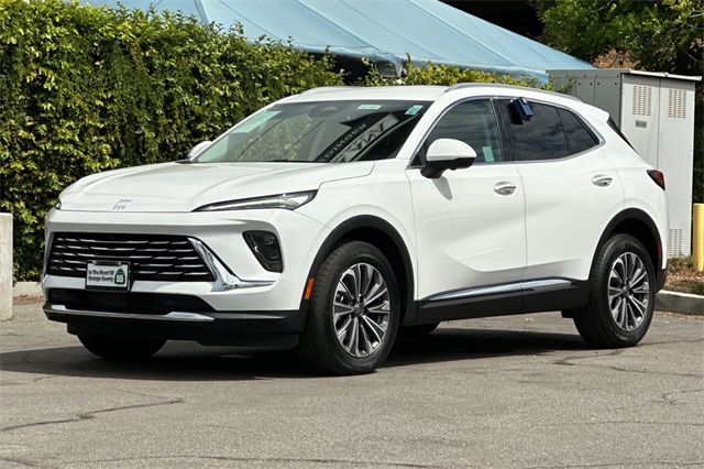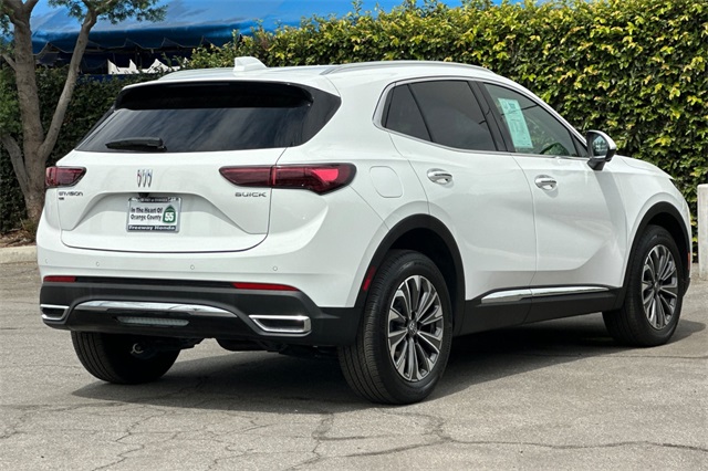 Summit White 2025 Buick Envision Preferred AWD. Powered by a turbocharged 2.0L with full time All-Wheel-Drive. It's color is called Summit White and it has Ebony leatherette seat trim. Features include Alloy Wheels, LED lighting for great night time visibility. The front seats are heated and powered with a 2-position memory for the driver. The BOSE 9-speaker premium audio system has a 30'' diagonal touch screen display with wireless phone charging/Apple Carplay/Android Auto/phone charging capability, navigation plus a head-up instrument display. There are blind spot alerts in the heated outside mirrors, adaptive cruise control, forward collision warning & braking, lane keeping assist, an HD surround vision camera along with rear parking sensors. Electronic climate control, and dark privacy glass help keep passengers cool inside.