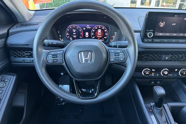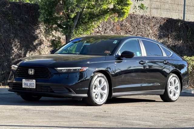 Certified. 2025 Honda Accord LX. It's powered by the 192HP 1.5L 4-cylinder with automatic transmission. It's Crystal Black Pearl outside with Black cloth seating on the inside. This sedan has 30,983 miles and is priced at $25,988. The Honda Sensing suite includes adaptive cruise control, forward collision warning, and lane departure warning for active safety. There's a backup camera for parking assistance. The automatic delivers smooth acceleration and excellent fuel economy. The spacious interior offers comfortable seating for five with generous rear legroom. Additional features include power windows, power door locks, and air conditioning. Made right here in the USA for quality you can trust. Contact Freeway Honda to schedule your test drive.