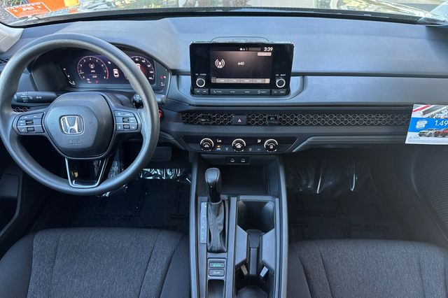 2025 Honda Accord LX. Propulsado por motor 1.5L de 4 cilindros con 192HP y transmision automatic. Exterior Crystal Black Pearl con interior Black cloth. 30,983 millas, $25,988. Equipado con camara de reversa, advertencia de cambio de carril, advertencia de colision frontal y control de crucero adaptivo. Asientos delanteros con ajuste manual, asiento trasero plegable 60/40 para expandir espacio de carga. Sistema de infoentretenimiento con pantalla tactil, conectividad Bluetooth, puertos USB multiples. Espejos con calefaccion, luces LED automaticas, llantas de aleacion. Aire acondicionado automatico de una zona, volante con controles integrados. Fabricado en Estados Unidos con garantia de fabrica restante. Contact Freeway Honda to schedule your test drive.