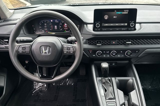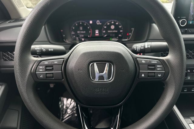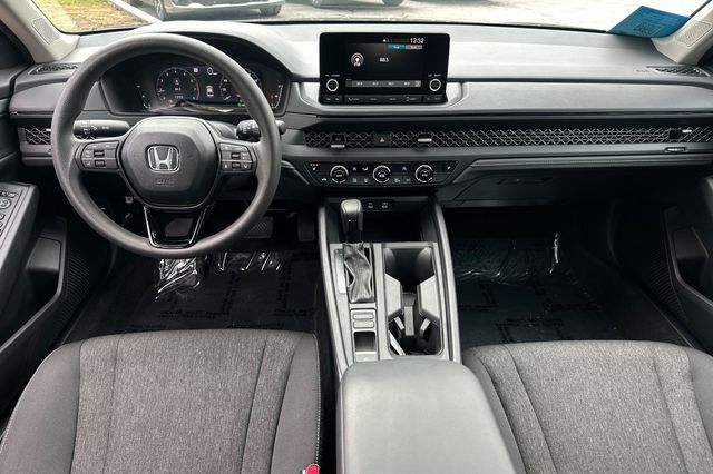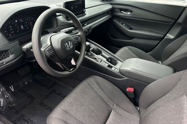 Certified. 2025 Honda Accord SE. It's powered by the 192HP 1.5L turbocharged 4-cylinder with automatic automatic transmission. It's Meteorite Gray metallic outside with Black cloth interior. This low-mileage example shows just 9,518 miles. Honda Sensing safety suite includes adaptive cruise control, forward collision warning, and lane departure warning. There are blind spot alerts in the heated outside mirrors and there's a backup camera (with cross-traffic alert) for easy reversing. The front seats offer good support, the spacious rear bench splits and folds to expand trunk capacity. Dual zone climate control keeps everyone comfortable. The infotainment system connects your devices seamlessly and allow you to use Apple Carplay or Android Auto. LED headlights provide excellent visibility. This USA-built sedan delivers reliable transportation with Honda's proven reliability. Priced at $29,988 with below-average mileage for the model year. Contact Freeway Honda to schedule your test drive.